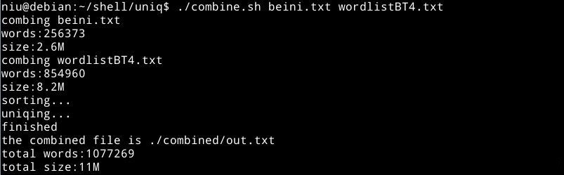 实测在虚拟机中运行该脚本合并共1.1g的字典文件用了17分钟,在真机上运行应该会更快。