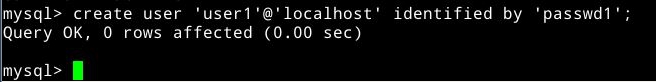 2.root身份登陆数据库,创建一个”user1“用户,密码是“passwd1”,