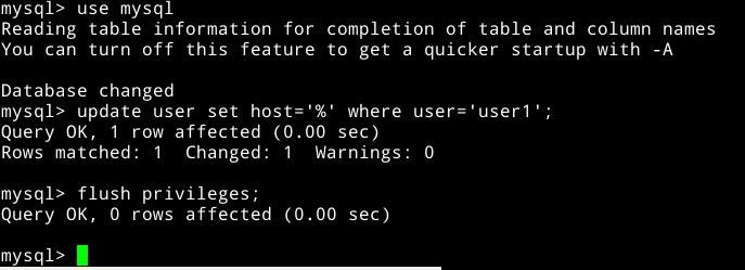 其中的'%'代表可以用任何地址登陆,也可以设置成具体登陆地址比如192.168.1.100