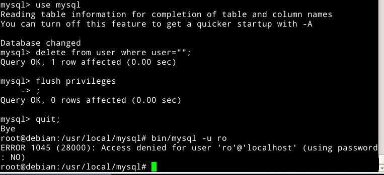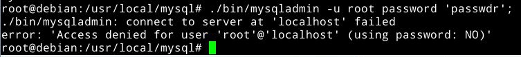 若之后再次使用mysqladmin尝试设置改变root密码就是被禁止的了