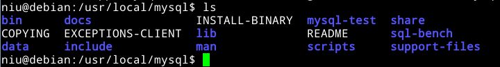 3.将解压后的文件目录移动到/usr/local/目录下并改名mysql,并切换到该目录。