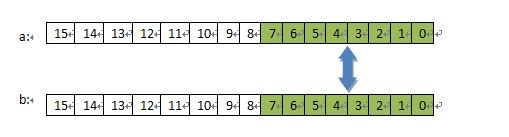 有两个16位数值A=0x1234,B=0xABCD,要求实现它们的低八位互换操作