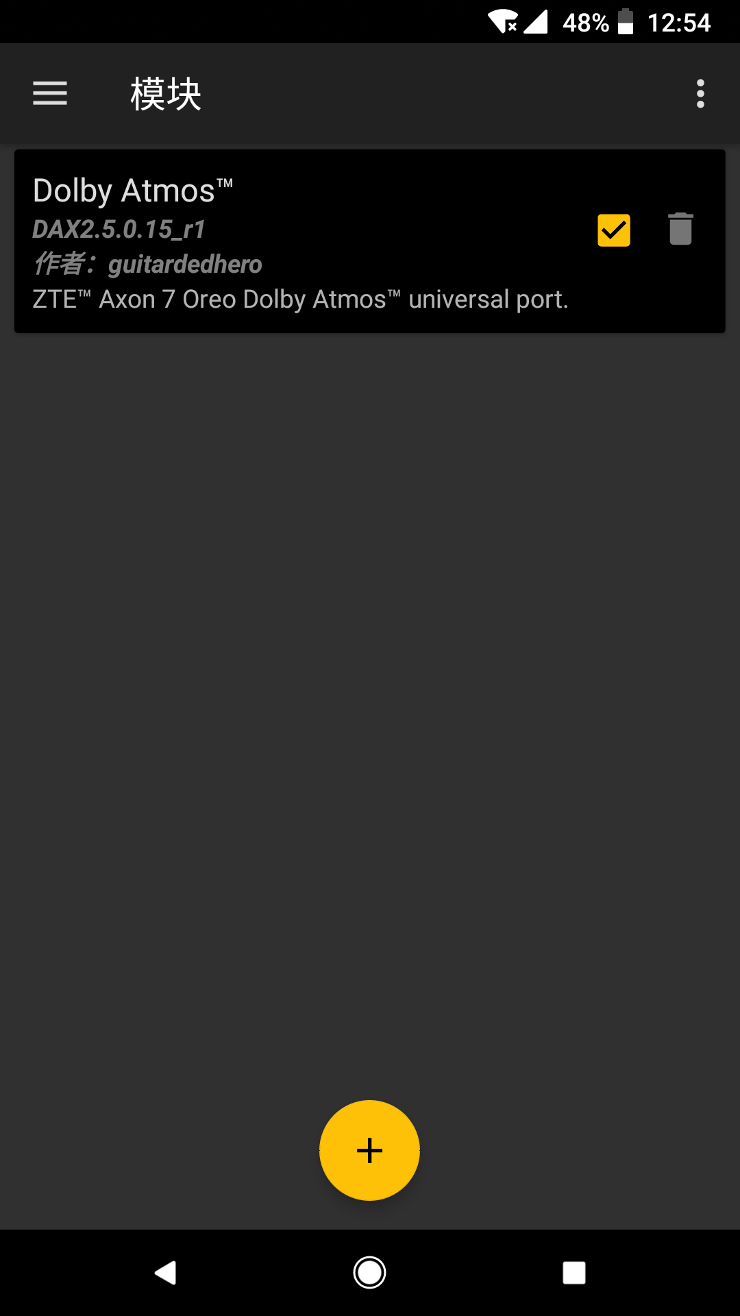 点击模块,点击下方的加号,弹出文件选择,选择杜比音效模块