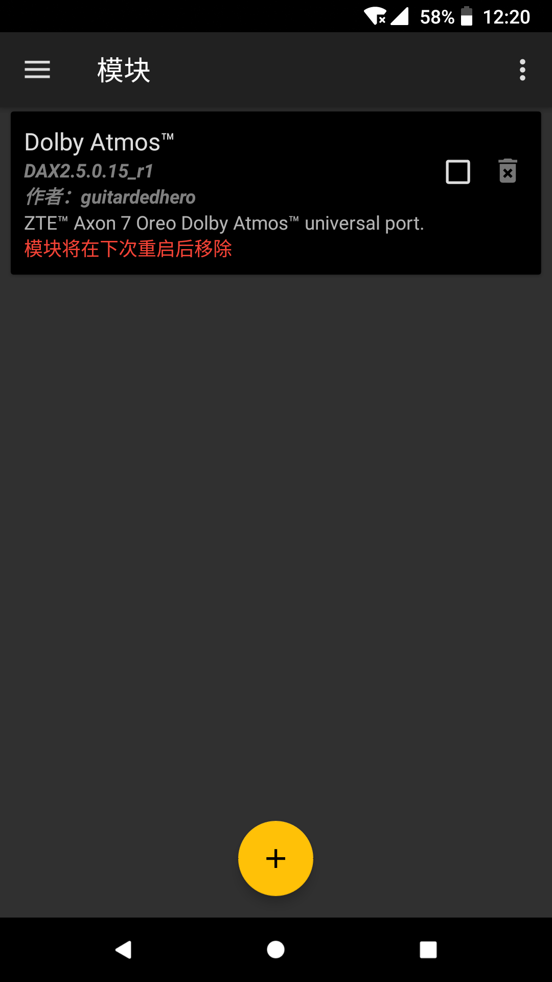 点击要卸载的模块右侧垃圾桶图标,会出现“模块在下次重启后移除”的提示。重启手机之后模块就会被卸载了