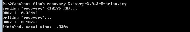 fastboot flash recovery D:\twrp-3.0.2-0-aries.img