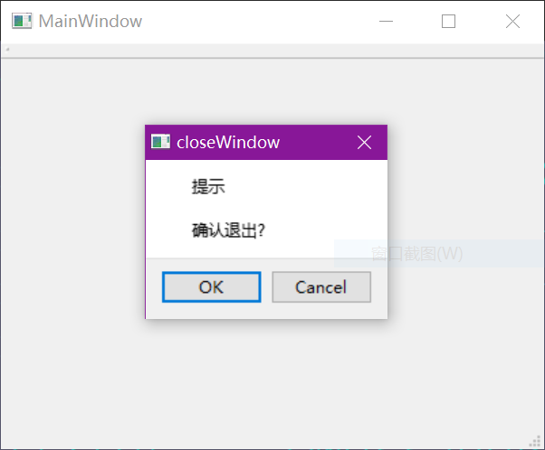 当鼠标点击窗口右上角的关闭按钮时,会触发一个窗口关闭事件(QCloseEvent),只需要覆写窗口类的closeEvent(QCloseEvent *event)函数,就可以对此事件进行相应处理
