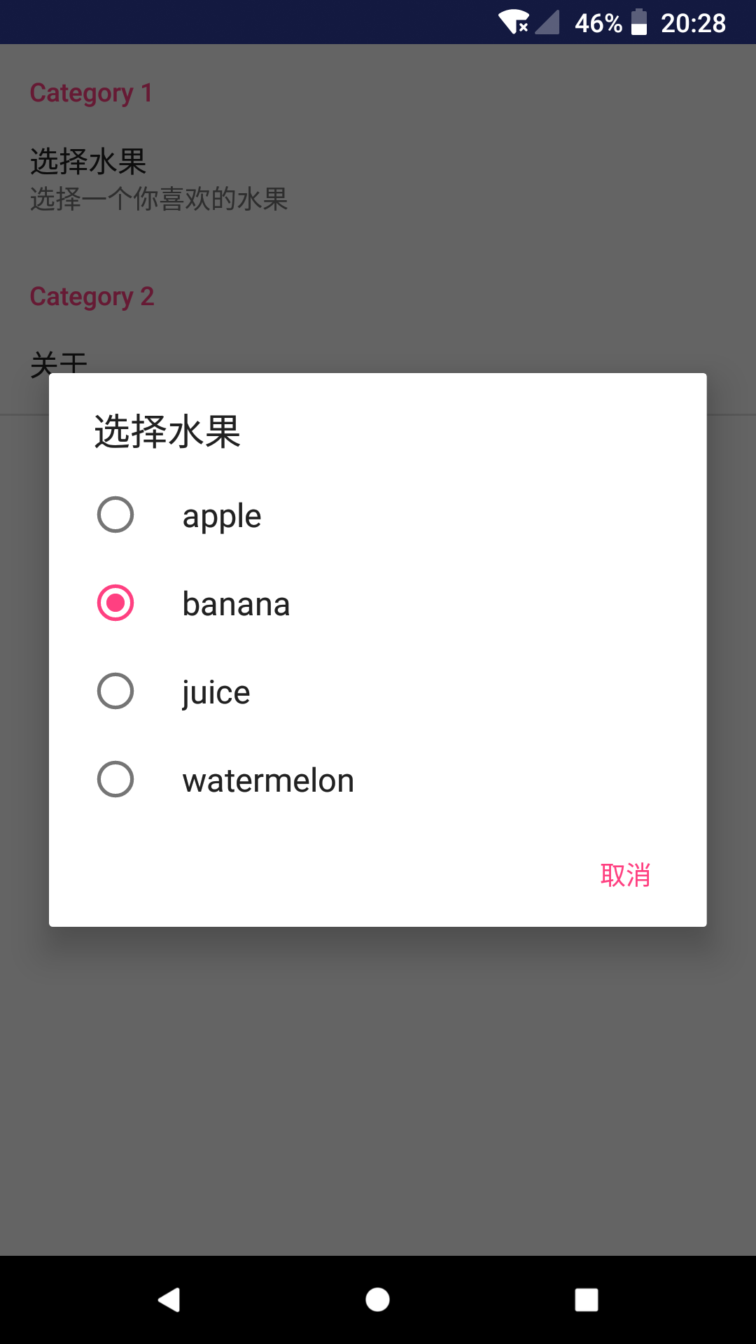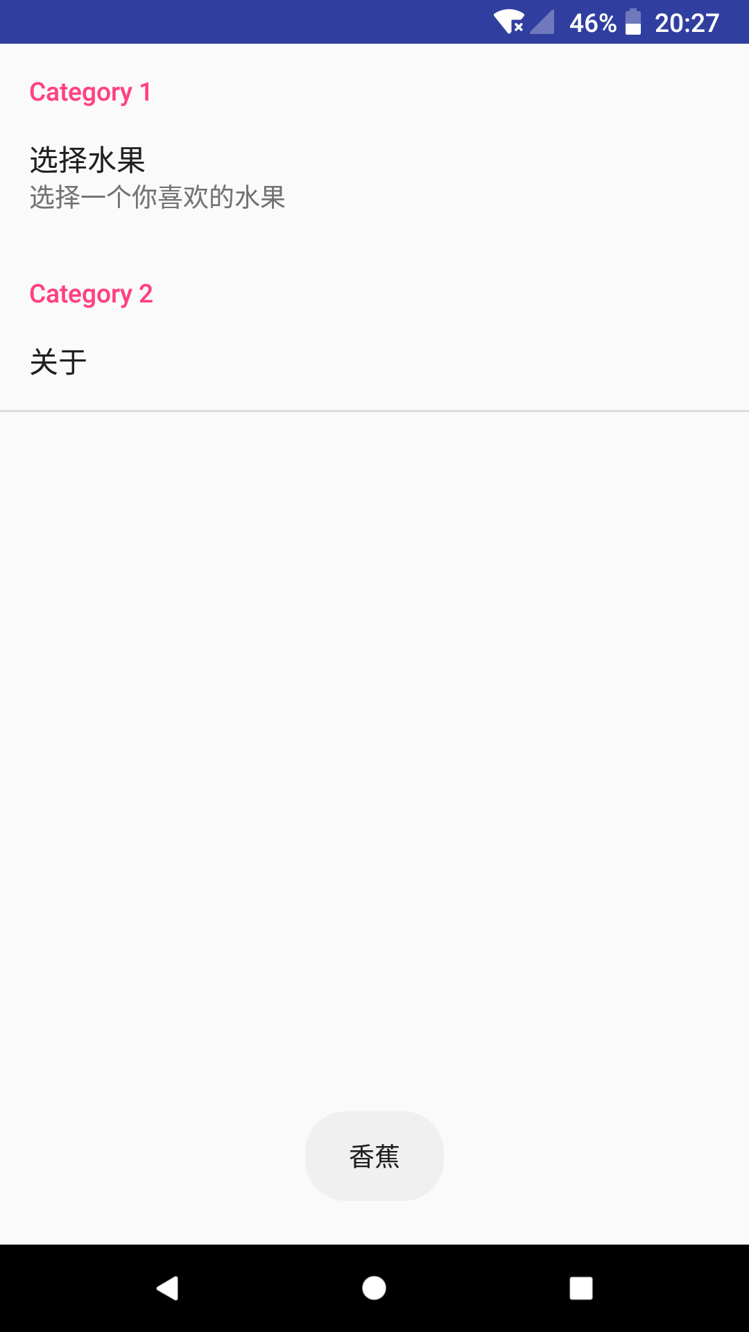 android:key是设置的键,相当于id,title是设置项标题,android:summary是标题下方的提示,android:defaultValue是默认选择第几项,设置为0就是选择List中第0项