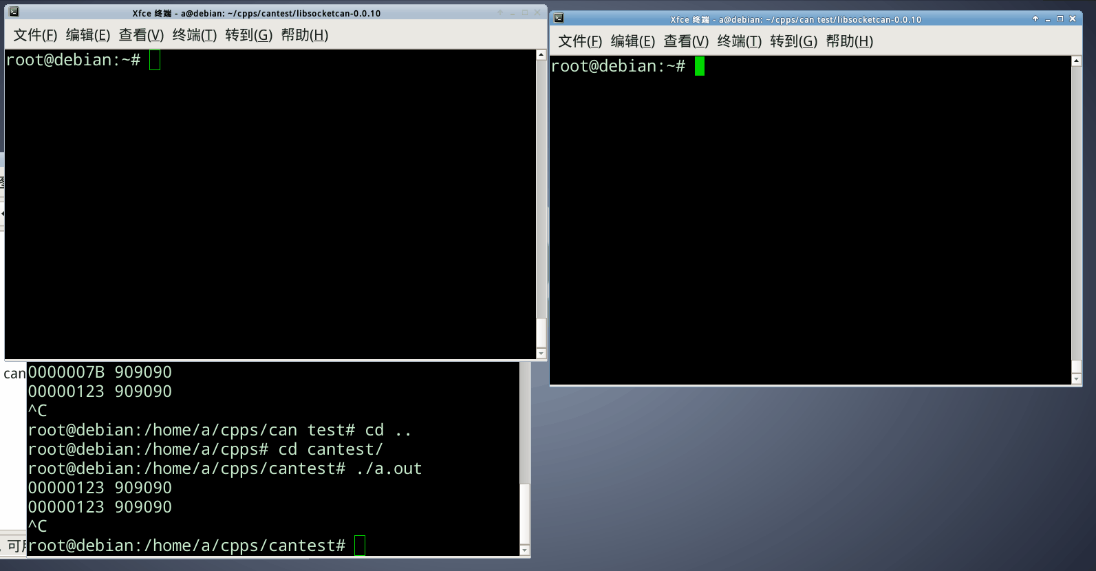 编写程序,首先向vcan0发送两次数据,之后监听数据