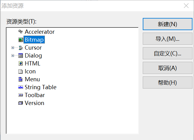 在资源视图中多了一个Bitmap文件夹,导入的位图id是IDB_BITMAP1