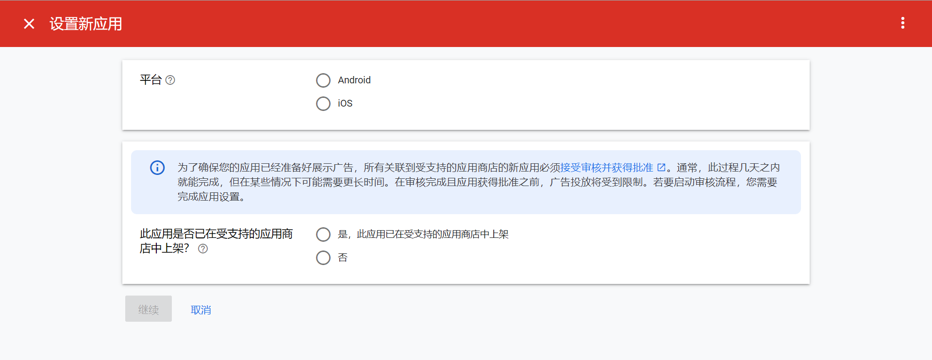 并不是任何时候服务器都会有广告,在注册应用后需要等待一段时间才会有广告被投放。