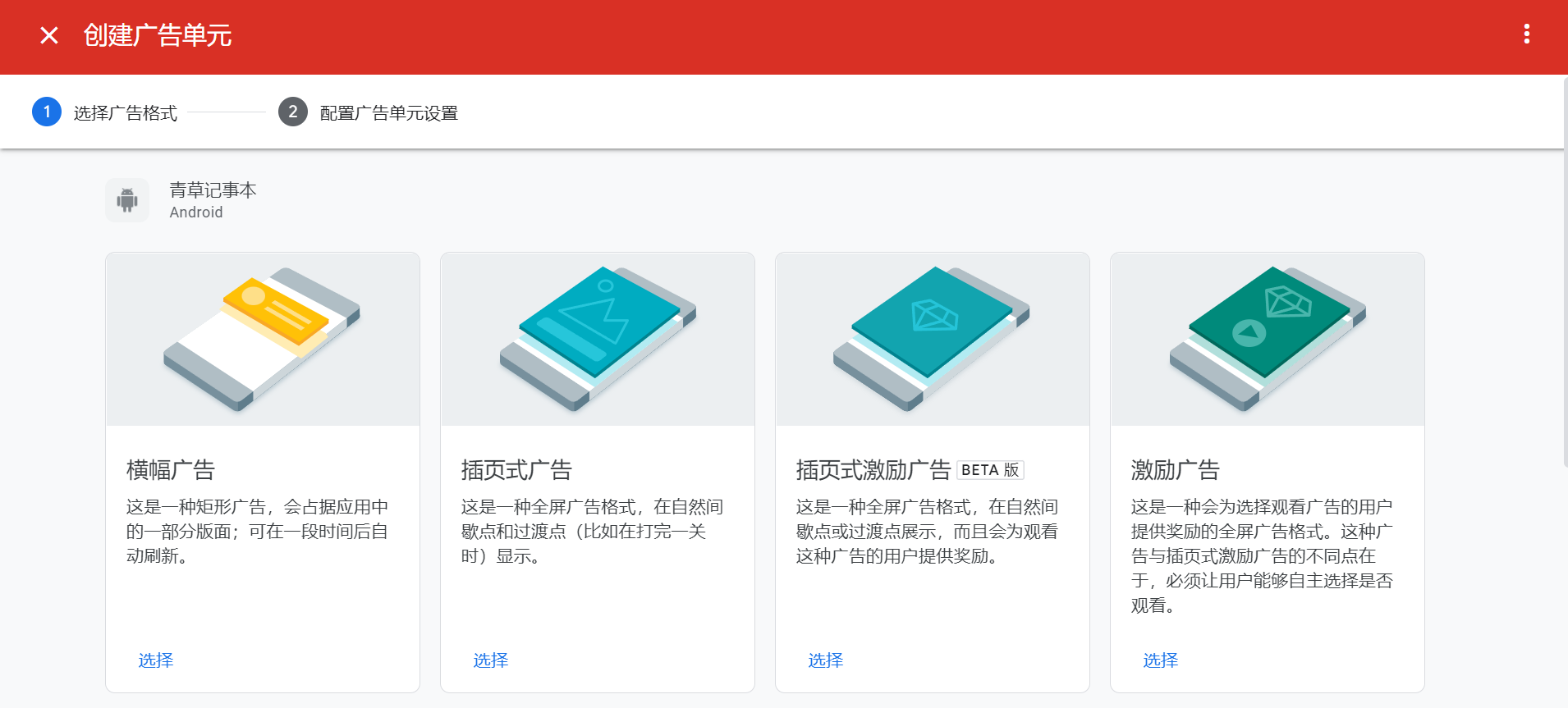 应用建立后,点击广告单元,新建一个广告单元