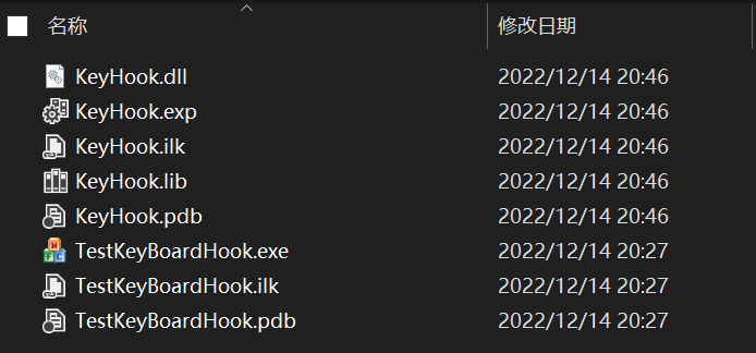 之后右键KeyHook项目,生成,得到了KeyHook.dll和KeyHook.lib文件
