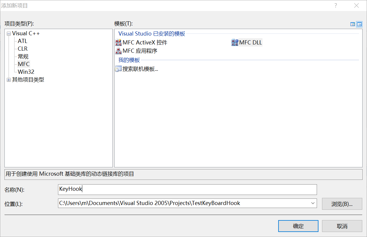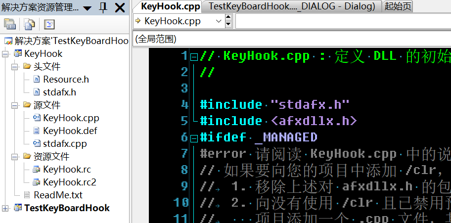 使用VS2005新建一个项目TestKeyBoardHook,使用DLL注入的方式使用全局键盘钩子