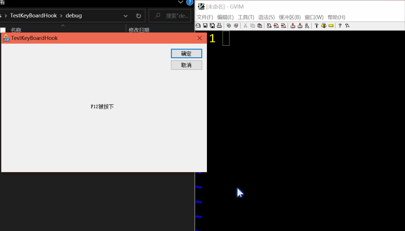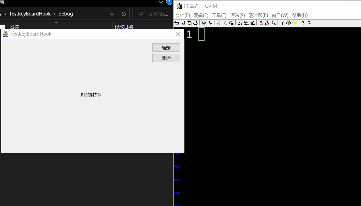可以看到,当在窗体中按f5等键,能够显示出来,但是窗体失去焦点后,在其它程序中按键,窗体就不能捕获到了