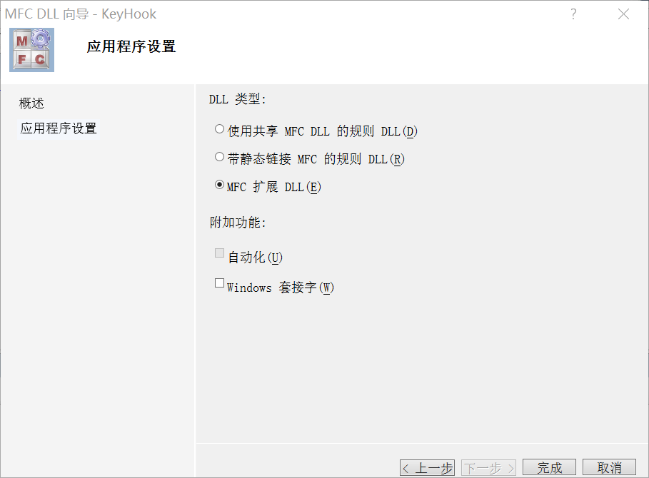 MFC扩展DLL,点击完成