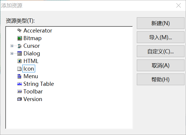添加图标资源,在资源视图中添加ICON资源,导入现有图标