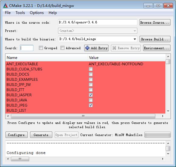 之后重新点击configure,直到红颜色消失