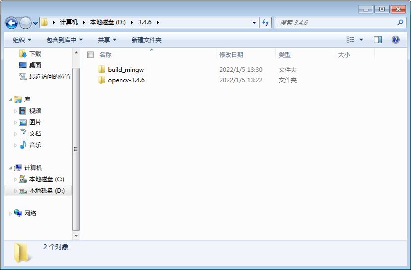 将下载的opencv解压。并且进入其目录。新建一个文件夹名为build_mingw