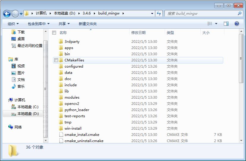 之后到opencv文件夹中之前建立的build_mingw文件夹。发现已经生成了用于编译的一大堆文件