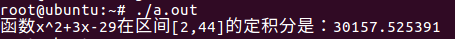 printf("函数x^2+3x-29在区间[2,44]的定积分是:%f\n",integral(fun_1,2.0f,44.0f,1000));