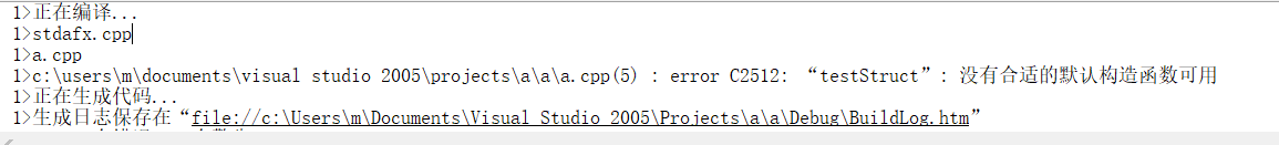 VS编译时出错,结构体“testStruct”没有合适的默认构造函数可用