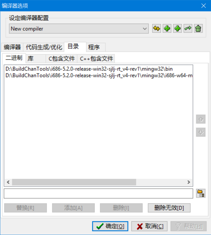 之后点击目录,分别对二进制、库、c++包含文件的目录进行配置