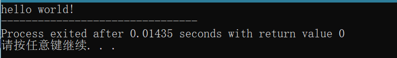 点击工具栏编译运行按钮,得到以下输出说明编译器配置正确