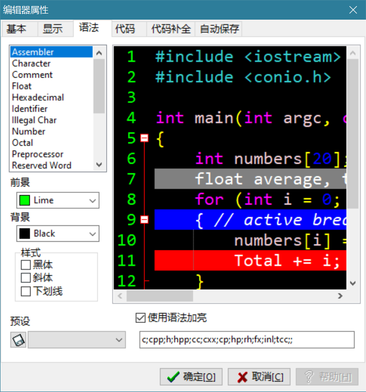 点击语法,自定义编辑器代码颜色