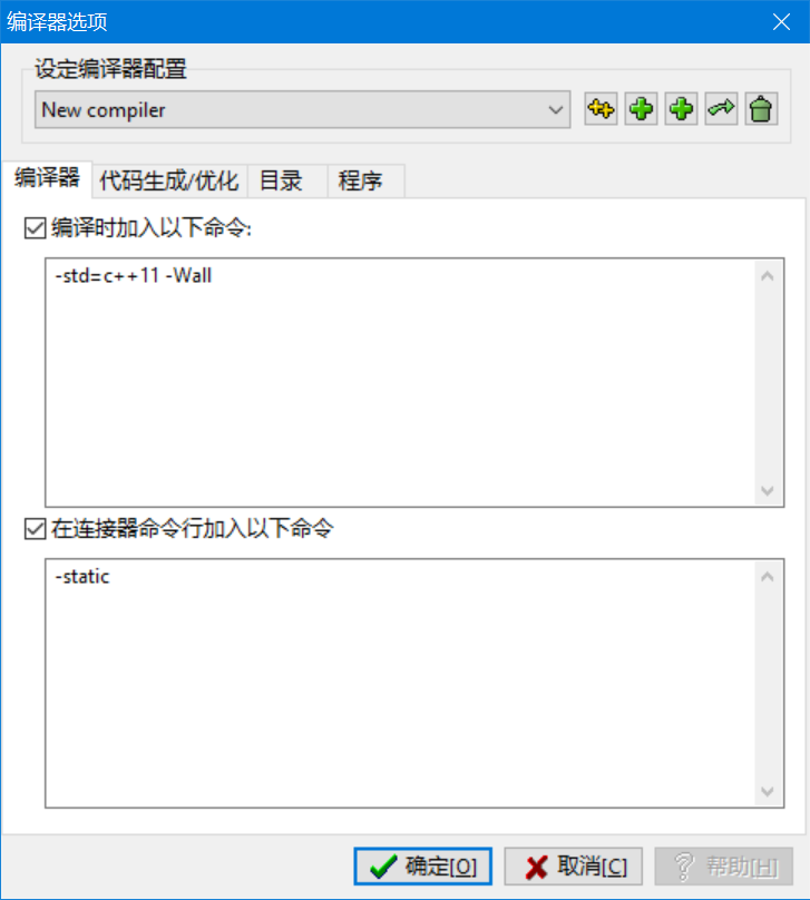 勾选编译时加入以下命令,输入-std=c++11,开启c++11语法支持。