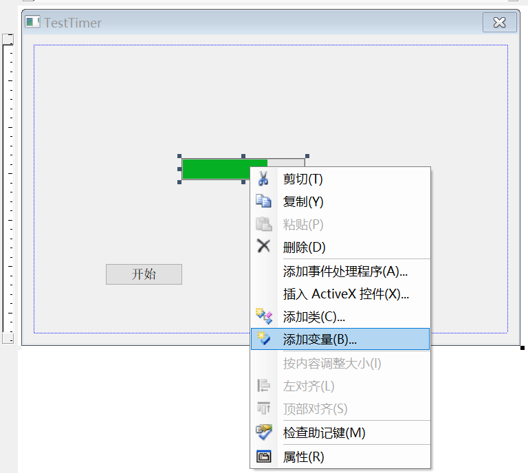 双击开始按钮,添加事件处理程序,使用SetTimer创建定时器,其中1是创建的定时器ID,100是每个100毫秒触发一次定时器(发送WM_TIMER消息)
