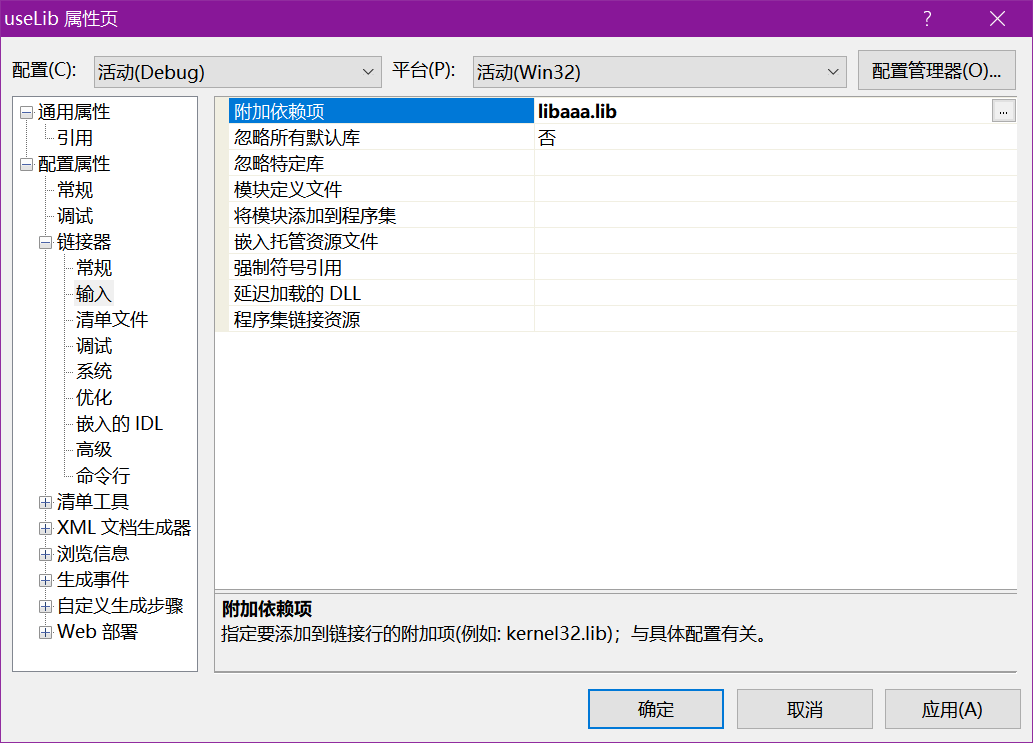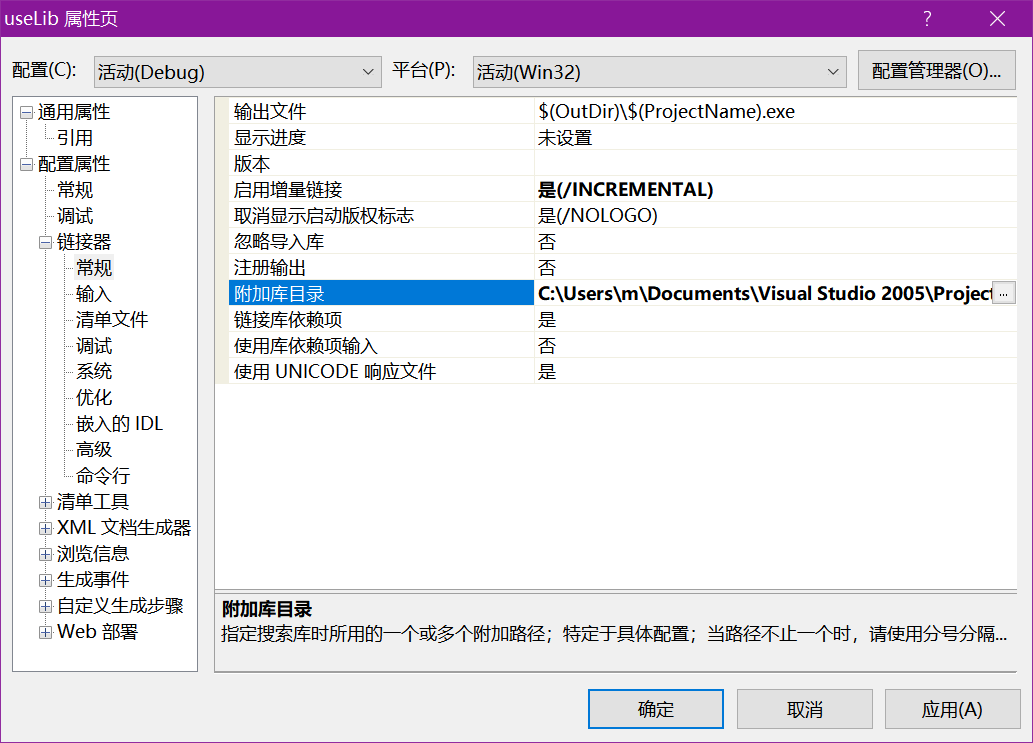 链接器,常规,附加库目录里面,加上所用到的静态链接库所在的目录