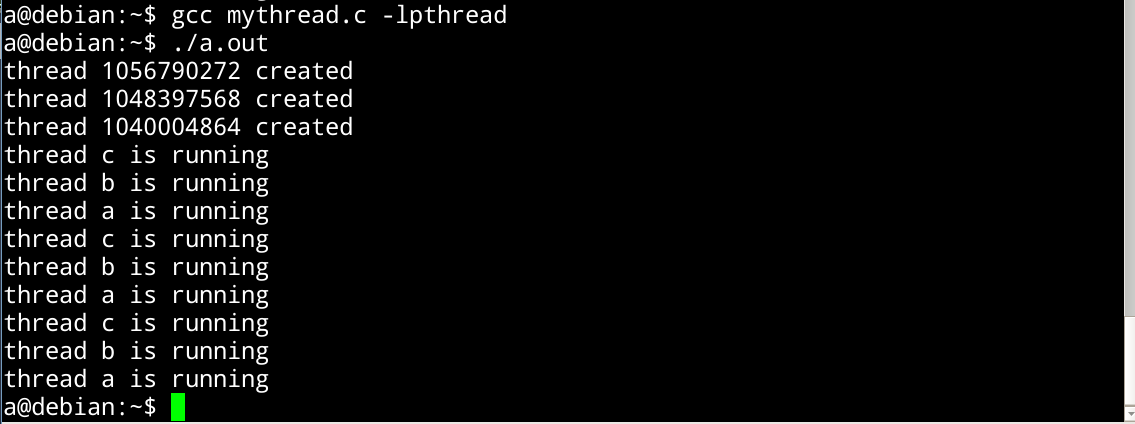 gcc mythread_linux.c -lpthread