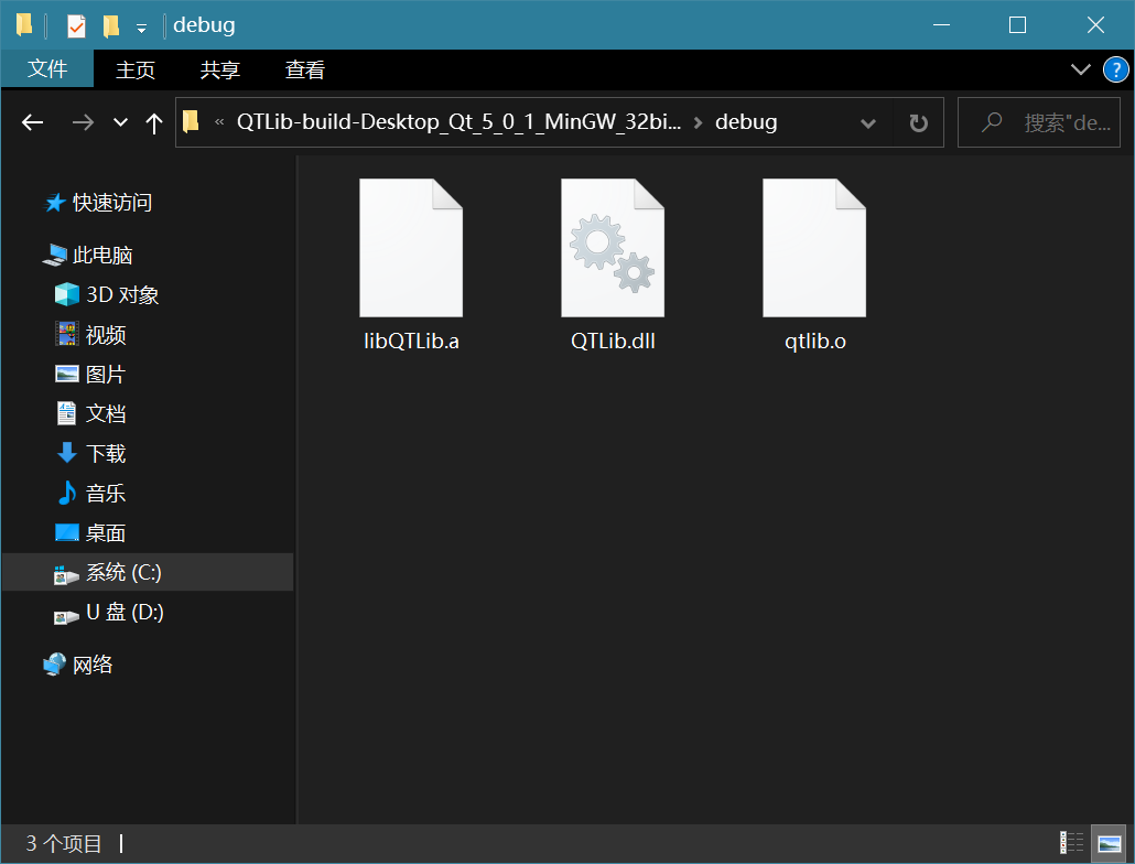 由于我使用的是基于MinGW的qt版本,对于g++,动态库只会生成dll文件,不会生成对应的lib文件,使用时只需要在项目文件中使用命令链接对应的dll文件即可。
