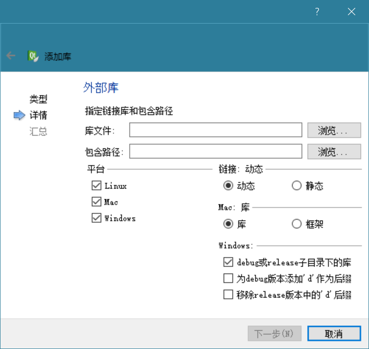 而对于基于MSVC的qt,生成动态库同时会生成lib文件,在使用时只需要对项目右键,添加库,外部库,选择相应的lib文件与路径就可以了