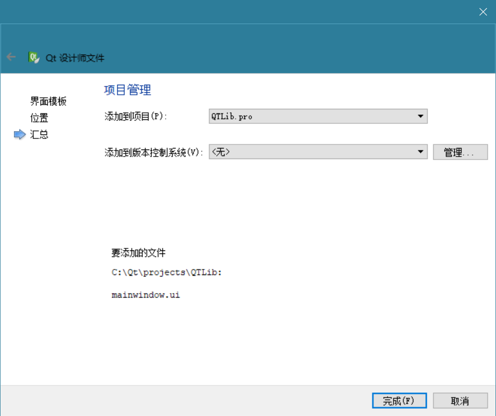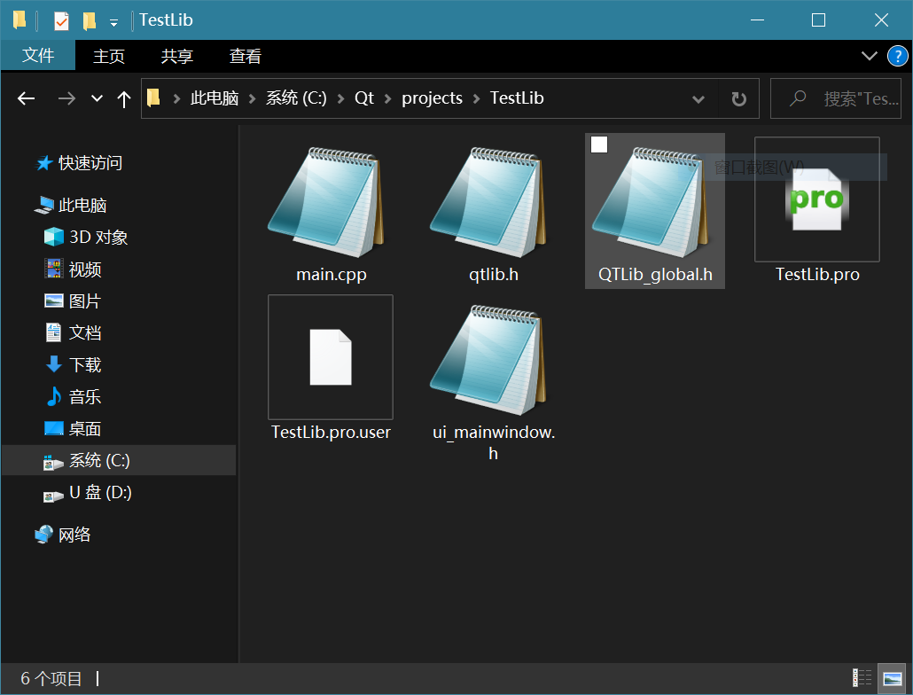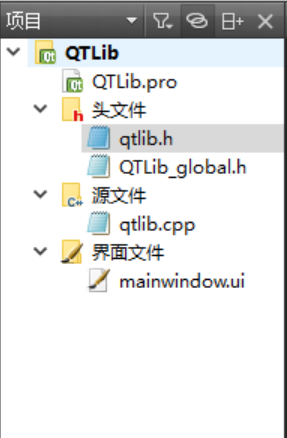 项目创建完成后,将QTLib源代码文件夹下的qtlib.h、QTLib_global.h以及编译目录下生成的ui_mainwindow.h都拷贝到TestLib源代码文件夹下