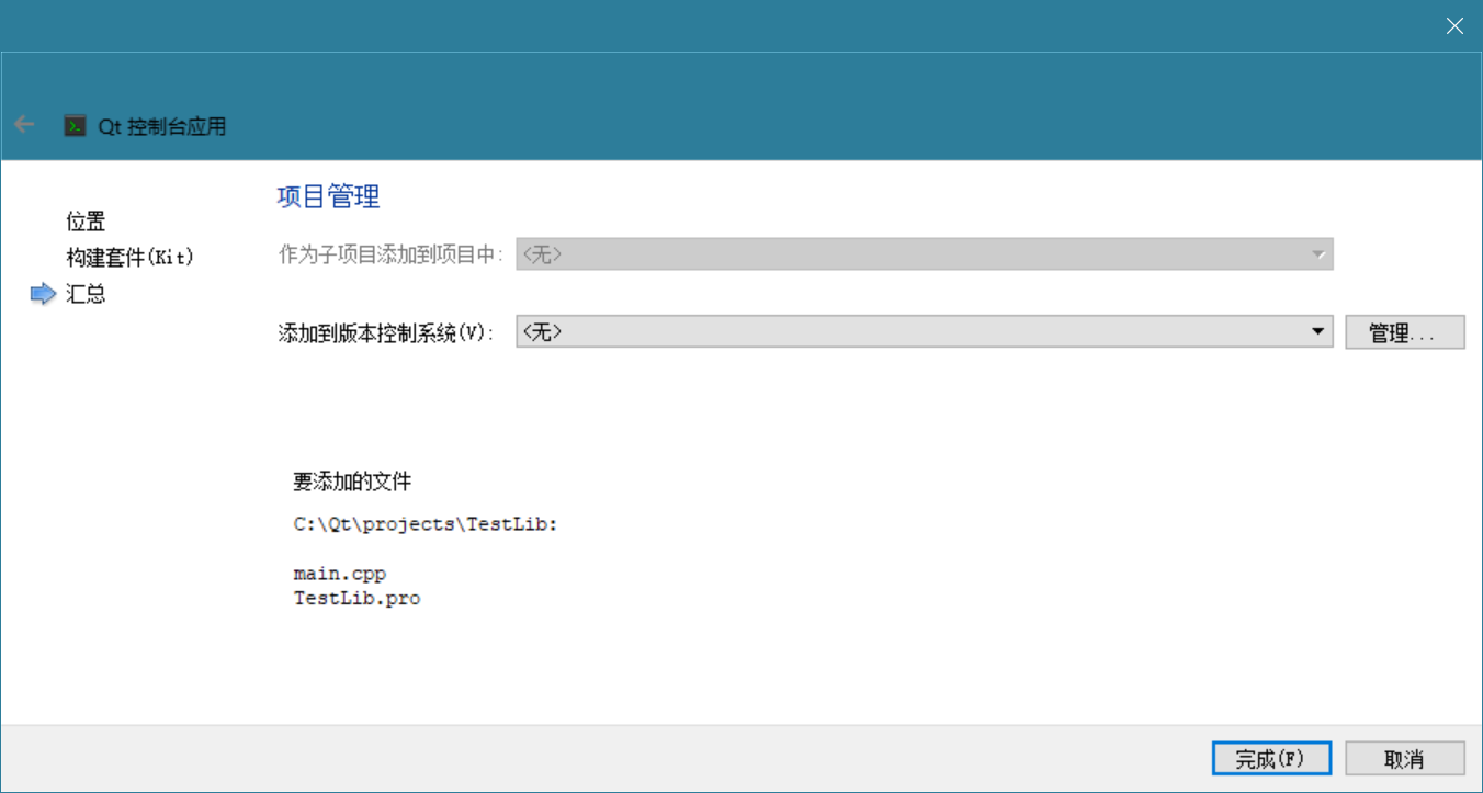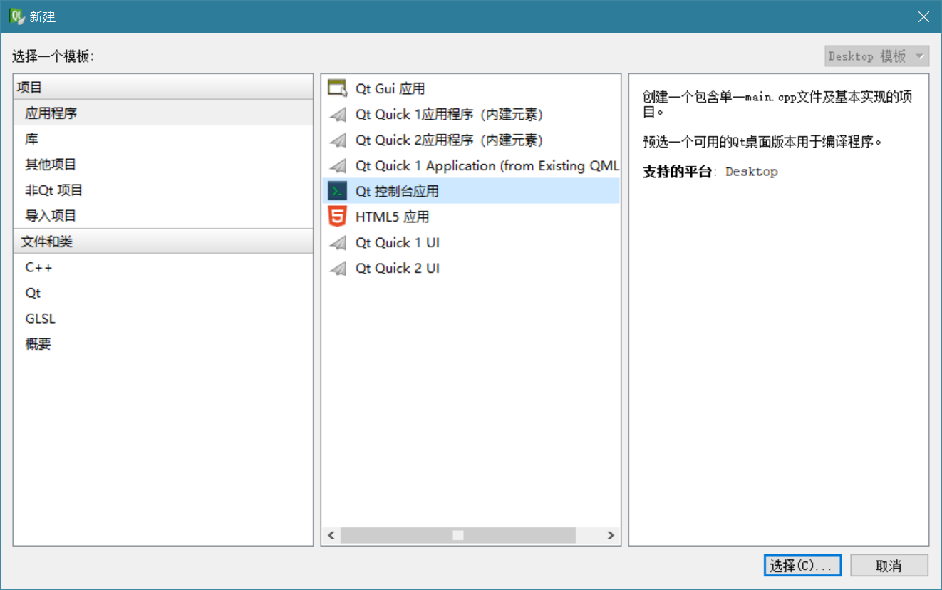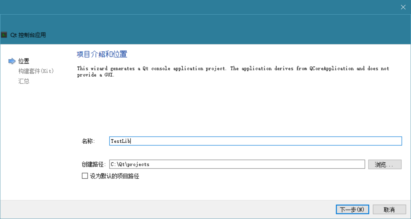 新建一个项目,简单的一个Qt控制台应用,使用它来测试我们生成的动态库