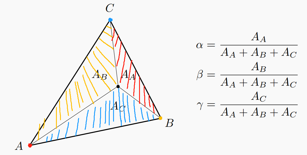 β=${(y-ya)(xc-xa)-(x-xa)(yc-ya) \over (yb-ya)(xc-xa)-(xb-xa)(yc-ya)}$