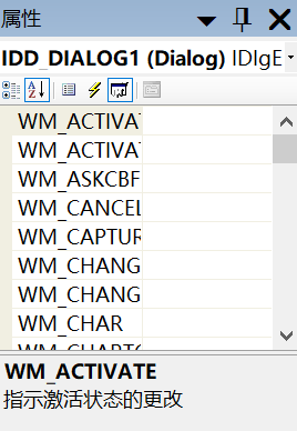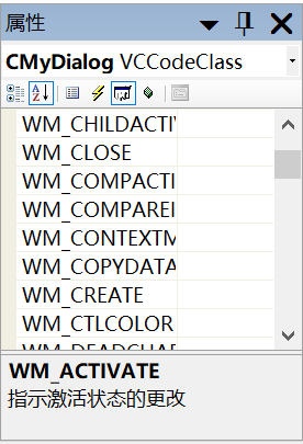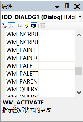 并且重新打开项目,就可以在窗体的属性中看到相关的消息了,直接通过属性界面添加消息响应函数