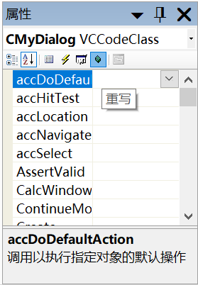在类视图中,对于自定义类右键属性,可以看到它的虚函数,点击实现对虚函数的覆写