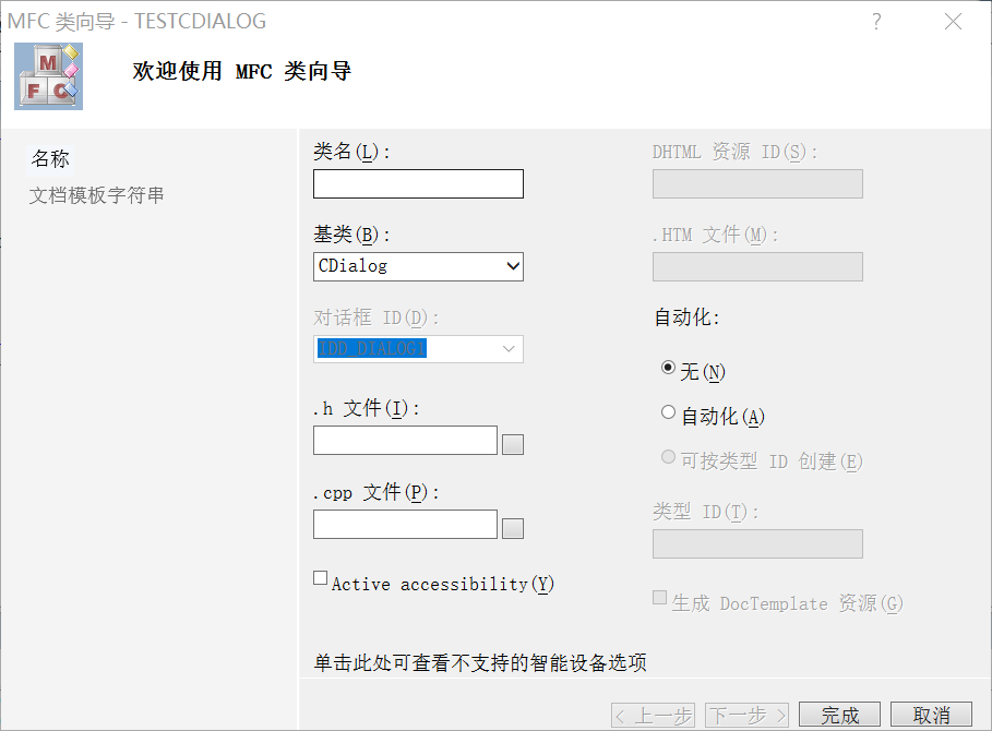 对于使用项目中的类向导建立的自定义类,如果要与资源视图中窗体的属性建立关联,办法是在类声明中定义包含窗体资源ID的匿名枚举