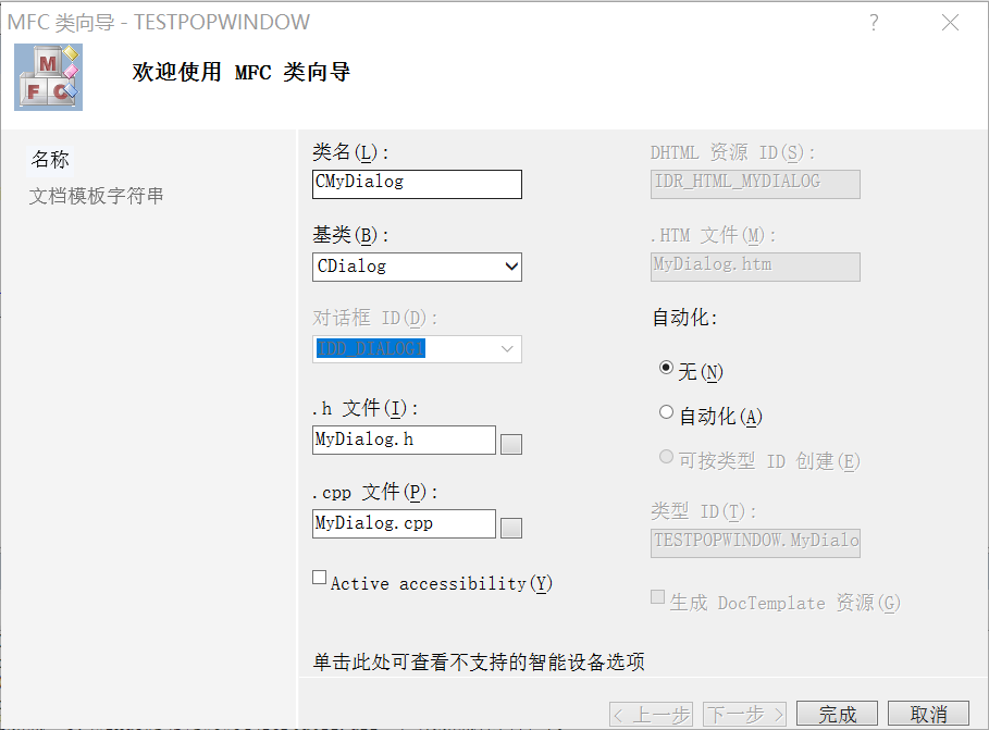 这就需要自定义类,直接对于窗体右键,添加类,基类要是窗体所属的类,也就是CDialog