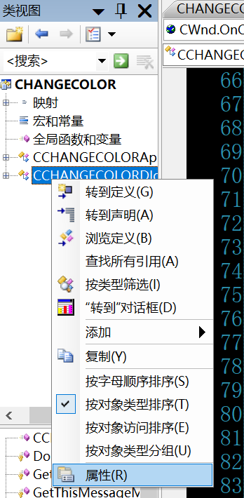 对于需要改变控件文本颜色的窗体,切换到类视图,对于窗体类,右键,属性