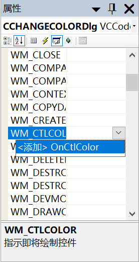 在属性中找到消息,添加WM_CTLCOLOR消息的事件处理程序