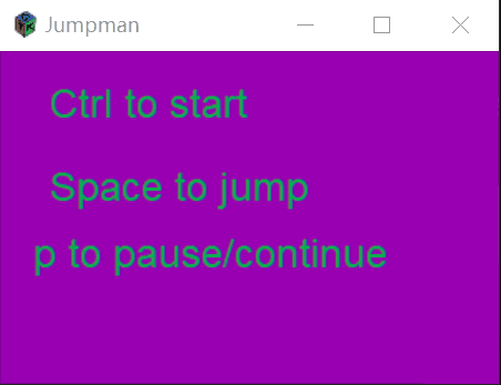 //sprintf(info,"Ctrl to start\nspace to jump\n p to pause/continue\n");