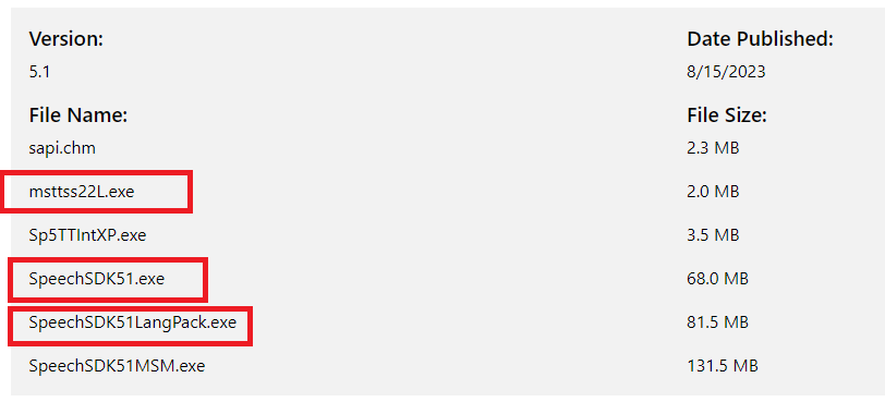 需要msttss22L.exe、SpeechSDK51.exe、SpeechSDK51LangPack.exe三个,下载后全部安装