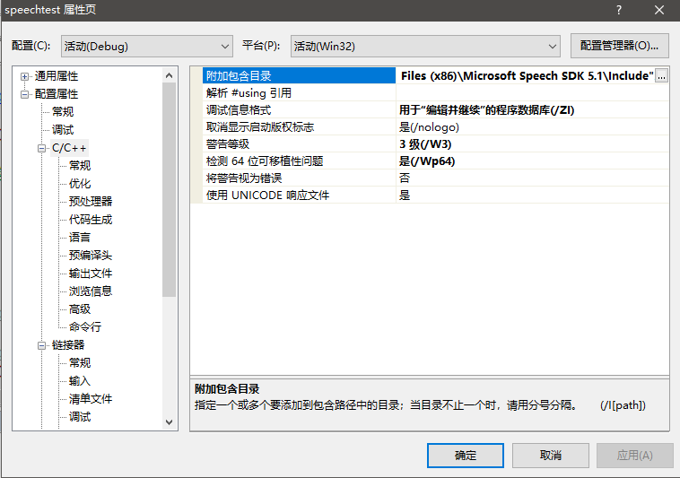 点击项目,属性,配置属性,c/c++。设置附加包含目录,就是sdk安装目录下的include文件夹