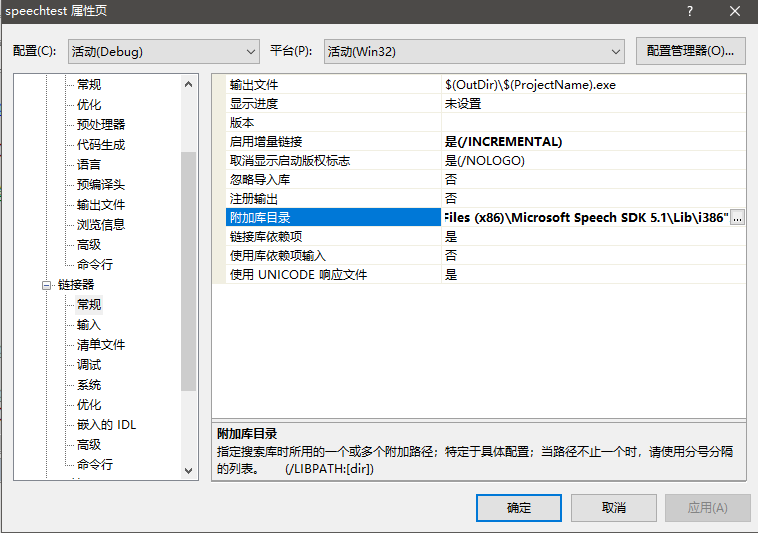 链接器,常规,附加库目录就是sdk的lib\i386文件夹