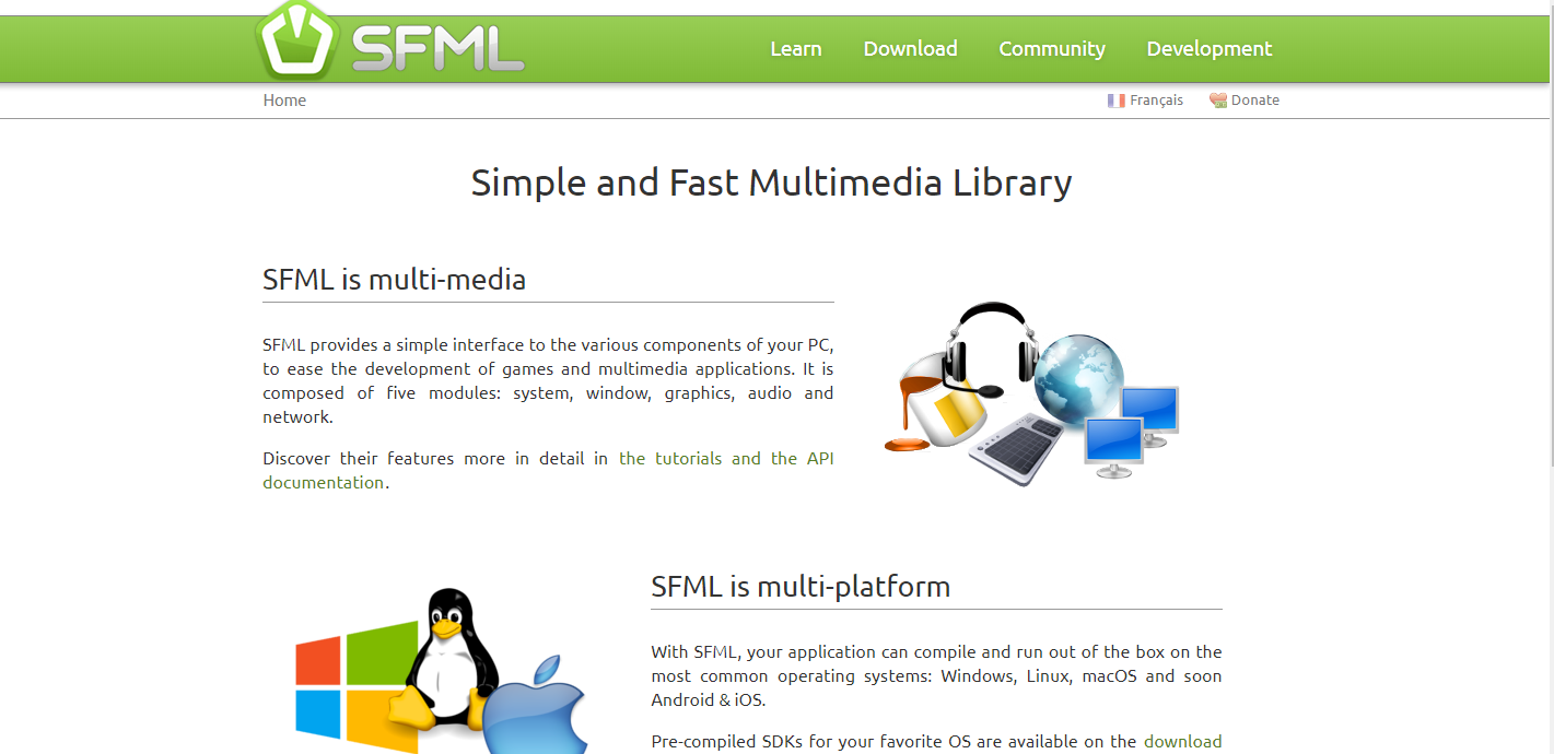 使用SFML,您的应用程序可以在最常见的操作系统上开箱即用地编译和运行:Windows、Linux、macOS以及即将推出的Android和iOS。