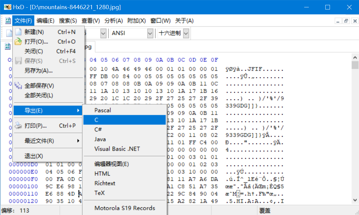 实际上也可以不用HxD,可以自己写一个程序,用二进制模式打开文件,然后根据数据生成一个类似的c语言文件储存文件信息,也是一样的效果。