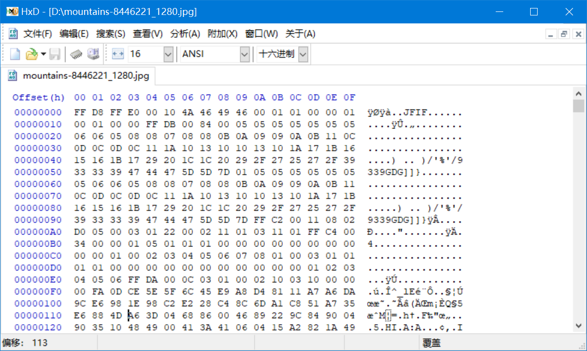 用图片资源作为例子,使用16进制编辑器如"HxD"打开